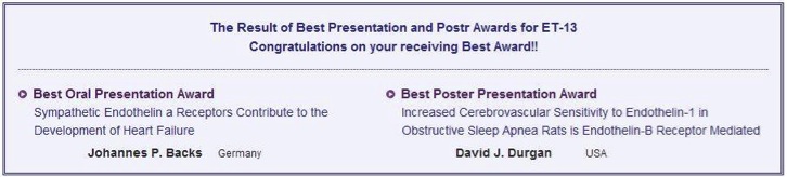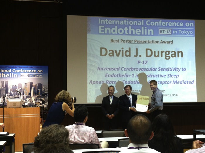 Dr. David J. Durgan, UT Southwestern Medical Center, Dallas, U.S.A., received the ET-13 Best Poster Presentation Award