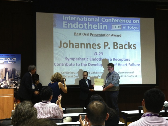 The ET-13 Best Oral Presentation Award was presented to Dr. Johannes P. Backs, University of Heidelberg, Germany