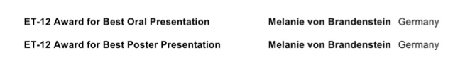 Dr. Melanie von Brandenstein, University of Koeln, Germany, shown here with Dr. Yanagisawa, received the ET-12 Best Poster Presentation Award and the ET-12 Best Oral Presentation Award