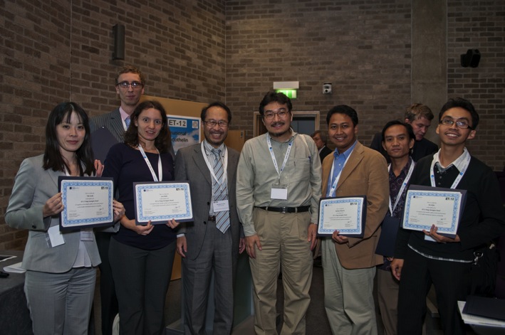 The ET-12 Young Investigator Award was presented to investigators aged 35 and younger in recognition of the excellence of research presented at ET-12. A total number of 35 awards was presented to young investigators from 11 countries. Bambang Widyantoro (far right), after ET-10 and ET-11, was awarded an Young Investigator Award